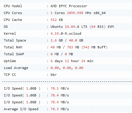 本次测试的是 1C/1G/40G SSD/2T流量/300Mbps带宽的最便宜机型.