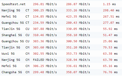 ping延迟平均: 联通60ms, 移动90ms, 电信: 290ms